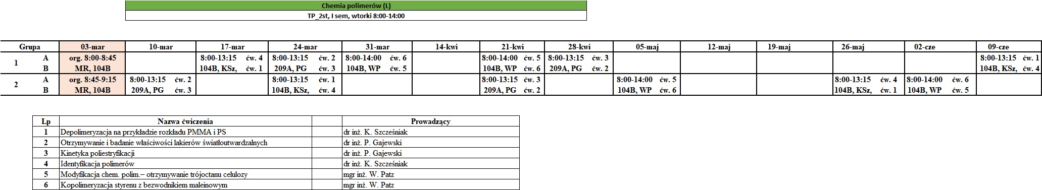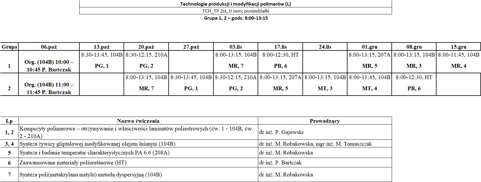 semestr II – Technologie produkcji i modyfikacji polimerów