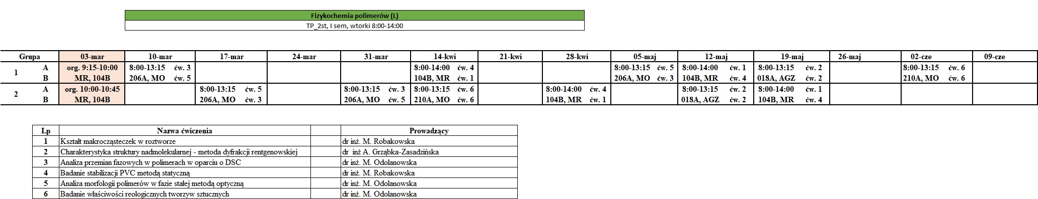 semestr I – Fizykochemia polimerów