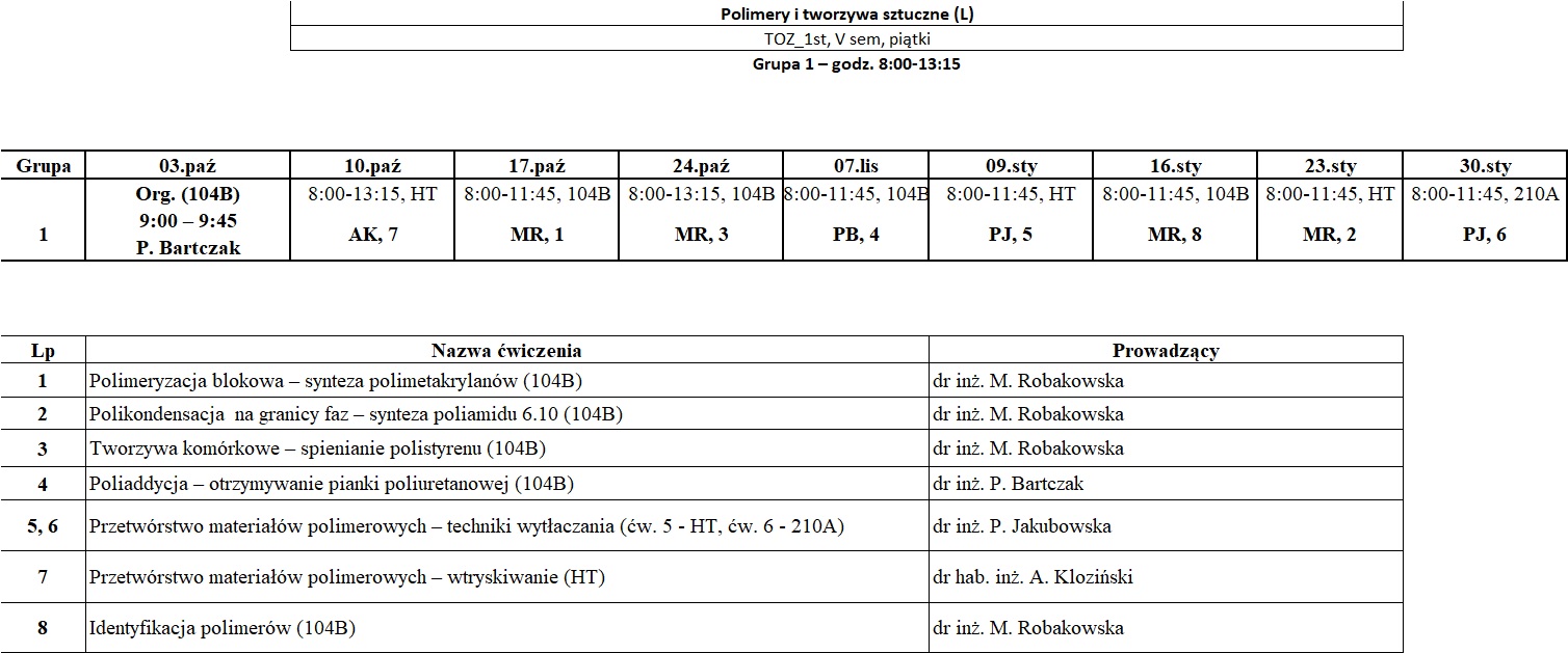 V semestr – Polimery i tworzywa sztuczne